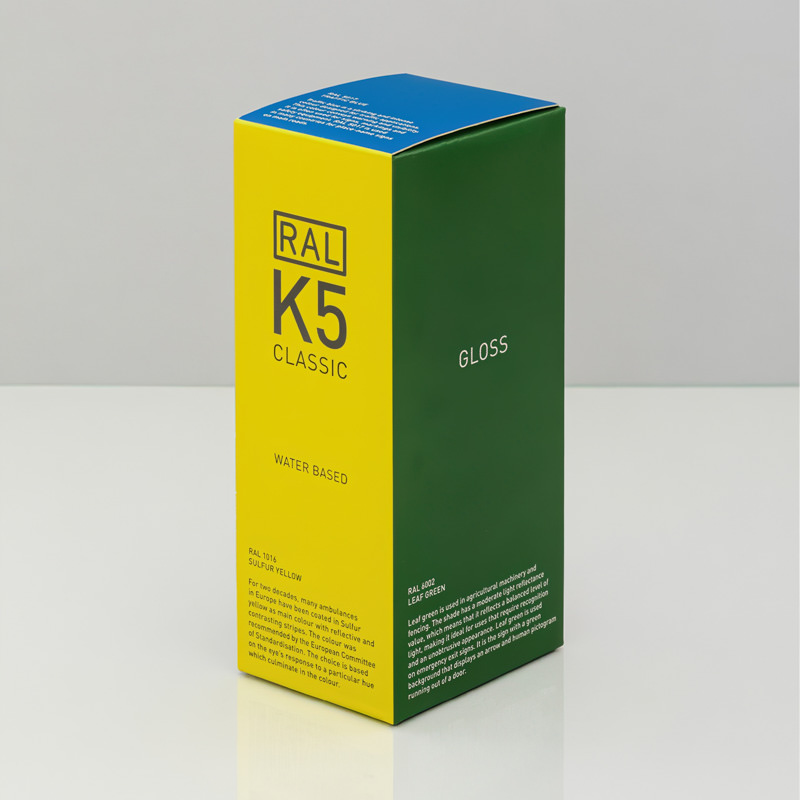 RAL K5 High Gloss gir en blank og svært fargemettende presentasjon av alle 213 RAL Classic-fargene. Perfekt der du trenger å matche lakk, metalloverflater, industriprodukter eller blanke malingssystemer.