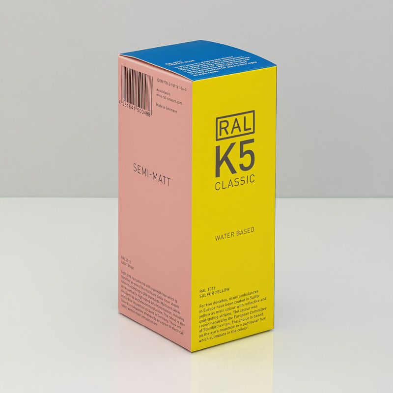 RAL K5 Semi Matt er den klassiske RAL-viften som brukes av arkitekter, interiørdesignere, industridesignere og malerbransjen. Alle 213 RAL Classic-fargene presenteres i store, semi-matte faneprøver som gir nøyaktig fargevisning uten reflekser.